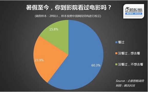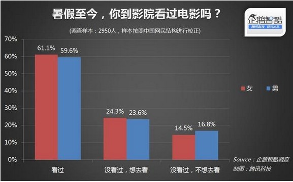 暑期电影的表现无疑让国内电影再次“疯狂”。在最近展开的一项调查中,企鹅智酷尝试从用户层面来解读电影市场的繁荣景象。此次调查面向腾讯网用户展开,收到约6000份有效回复。我们按照CNNIC最新公布的中国网民结构,对样本进行了抽样校正,最后得到如下结论。